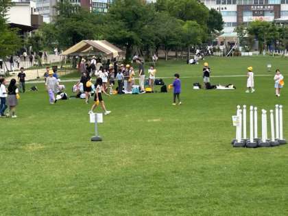 お弁当前は「おなかぺこぺこです」と元気がなかつたのに、食べ終わったら急に元気になって走り回っています。