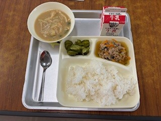 6/4 今日の給食 豚ひき肉とにらのそぼろ丼