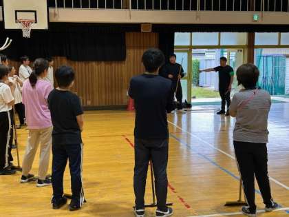 あってはならないことですが、万が一校内に不審者が侵入した場合の防犯訓練をおこないました。東成警察署から講師をお招きして、さすまたなどを使った実践を学びました。