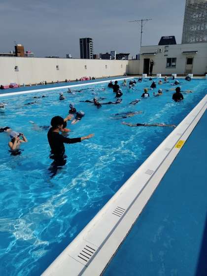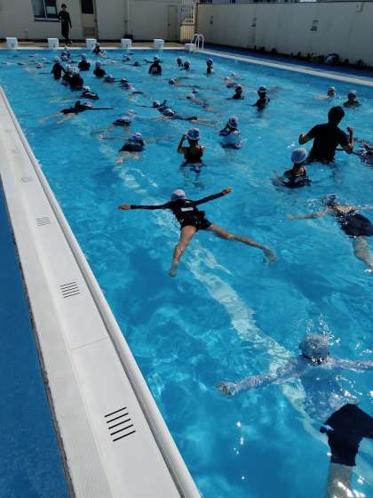 水慣れの後、クラゲ浮き・大の字浮き・だるま浮き・ふし浮きからけのび・バタ足の学習をしました。
