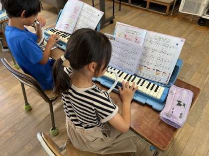 鍵盤ハーモニカで演奏の練習です。