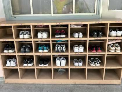隣の5年生の靴箱を見ると、こちらもそろっていました。