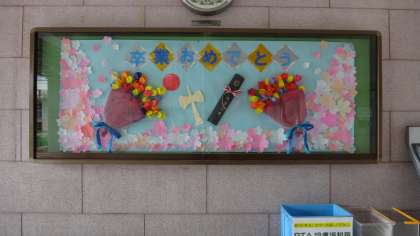 3月の玄関掲示は間近にせまってきた卒業式バージョンです。今年の卒業式は3月17日です。