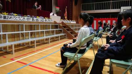 春の穏やかな日差しの下、第77回卒業式が行われえました。6年生59名が巣立っていきました。