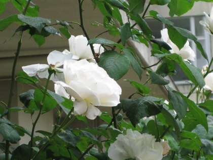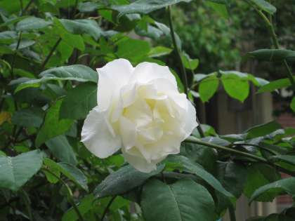 バラの色によって花言葉は違うんですね。それにしても美しい白いバラです!