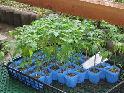 トマトの苗の観察と描写をおこなっています。
