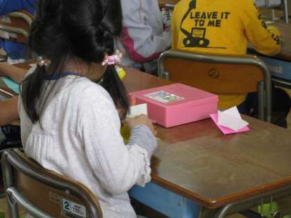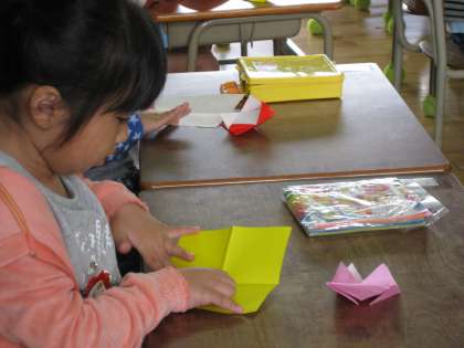 先生のお話を聞いて、折り紙に一生懸命取り組んでいるところです。