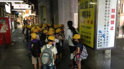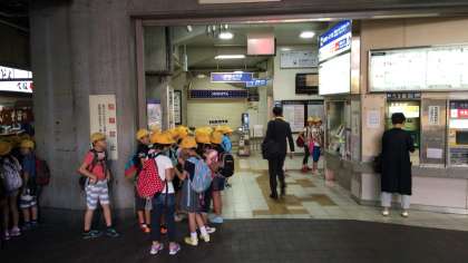 お天気に恵まれ、3・4年生は春の遠足に出発しました。近鉄電車に乗って花園中央公園を目指します。