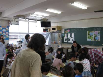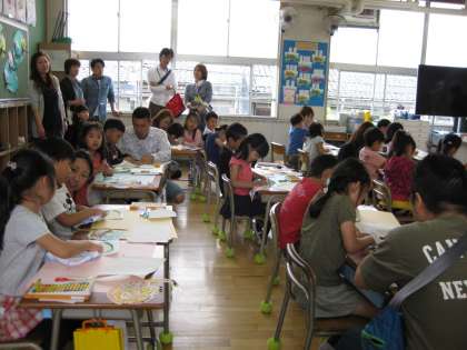保護者の方に見てもらいながら3年生が「図画工作」に取り組んでいます。