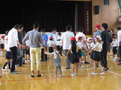 2年生全員が講堂で保護者の方にもご参加をいただき「体育」の授業を行いました。