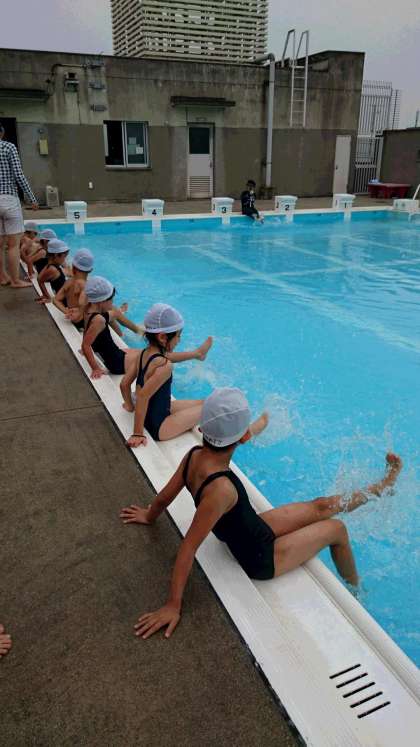 あいにくの曇り空の元でしたが、今日は1・2・5・6年のプール開きでした。1年生ははじめての大きなプールびっくりしながらもとても楽しそうに水慣れをしていました。蒸し暑かったので冷たい水が気持ちよかったです。