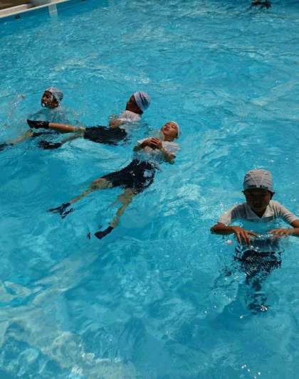 気温が上がり、水に触れるのが心地いい季節になりました。3〜6年生は水難に合った時の対応を学ぶため着衣泳の学習をしました。ペットボトルを使ったり、服を使ったりして浮き方を体験しました。服を着ていることで水の中では自由がきかないことにびっくりしていました。