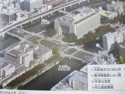 大阪市北区中之島の大阪市役所、中之島図書館、地方裁判所など周辺の状況です。