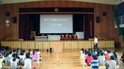 毎年、東陽中学校でクラブ体験をさせていただいています。今日はそのクラブ体験の説明会に生徒会から3名の生徒が来てくださいました。各クラブの紹介をしていただいて体験したいクラブを2つ選びます。2学期早々の行事ですが、どんなクラブの体験をするか、今から楽しみです。