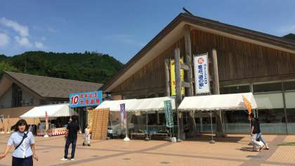 道路がすいていたので予定より早く道の駅「まほろば」に到着。だんだん山が迫ってきて、林間学習にやってきたという感じがしています。あと少しで宿舎到着です。