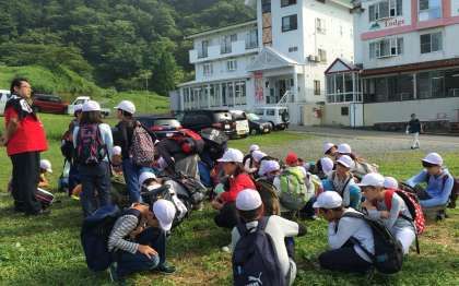 体調のすぐれない子もいなく、みんなでおいしく朝食をいただき山登り開始です。天気も回復して、山登りには絶好のコンディションです。グループで協力して高丸山を目指します。