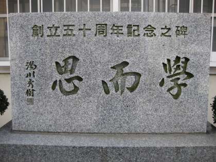 この記念碑には「学而思」と書かれていますが、どういう意味があるのでしょうか、これは中国の思想家孔子の述べた言葉を弟子たちがまとめた「論語」の中の一節です。