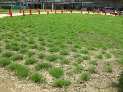 本校では、校庭の芝生化事業を実施しており、7月〜8月の間はその養生を行ってきました。明日の2学期初めから従前どおり校庭を利用いたします。この間、西校舎壁面改修工事もあり、ご迷惑をおかけいたしましたが、ご理解ご協力をいただきましてありがとうございました。