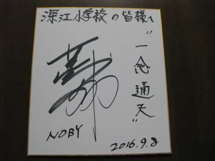 写真上:いただいた色紙「一念通天」