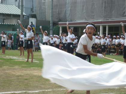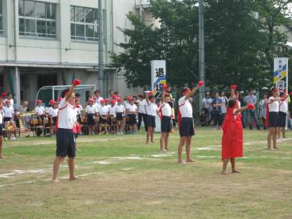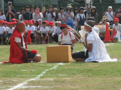 応援合戦は互角、赤白優劣のつかないまま、応援団長による将棋で決戦となりましたが、これもまたこう着状態で後半戦へ突入となりました。声をからしての応援合戦にはこちらも力が入りましたが、応援団の皆さまご苦労様でした。