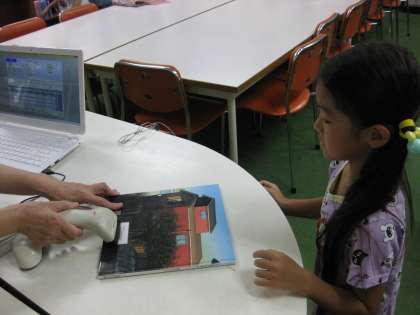 本校では、貸し出し、返却等の蔵書管理が迅速で円滑に進められるようパソコンによるバーコード処理をおこなっています。