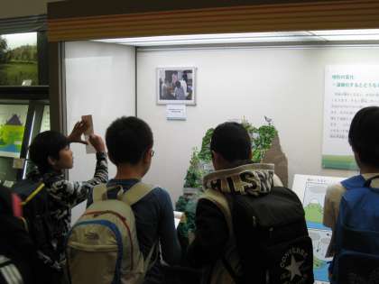 熱心にメモを取る深江小学校の5年生たちです。いつもと様子が違います。素通りする者はなく、展示解説を一つひとつていねいに読んでいました。