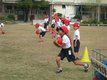 2組は「ボール投げ」です。「ナイスキャッチ!」