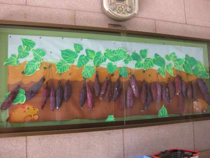 先日の2年生のおいもの作品を玄関に展示しています。(写真上)