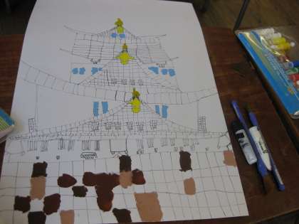 なかなか迫力のある大阪城が描かれています。完成が楽しみですね。