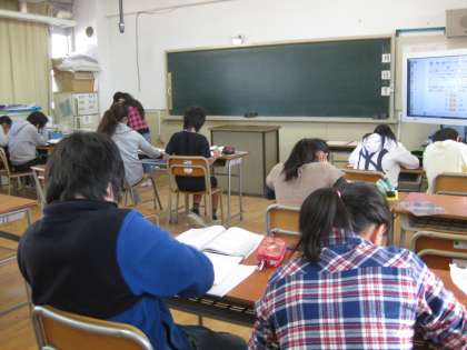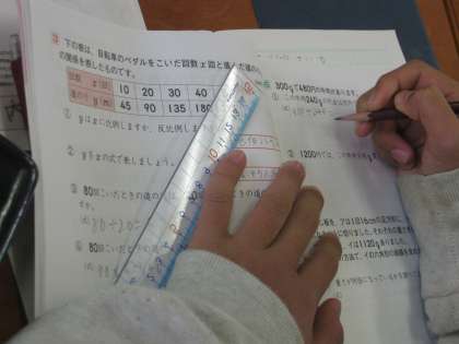 少人数学習の様子です。6年生の算数はこれまでと違って高度になってきます。じっくりと時間をかけてわかるまでしっかり学習をするためには少人数学習が効果的です。わかるまで何度も答え合わせにチャレンジしています。