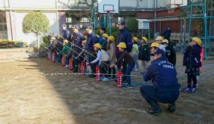 2時間目と3時間目を使って2チームに分かれて防災訓練を行いました。