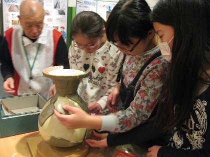 発掘体験コーナーではボランティアさんの指示に従って復元作業も体験することができました。