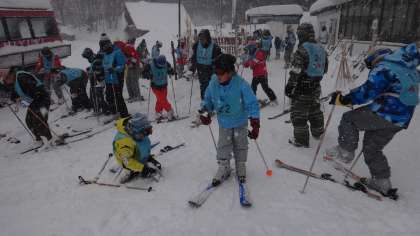 二日目も朝から雪、でも子どもたちは元気にゲレンデへ