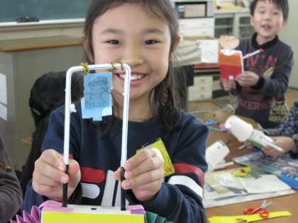 ブランコや鉄棒、ロボットなど想像力豊かな2年生たちです。
