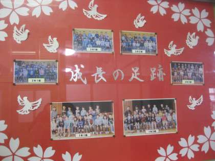 現在の6年生が入学してからの各学年での集合写真が、本日より掲示されています。教務主任の先生が心を込めて作成されたものです。