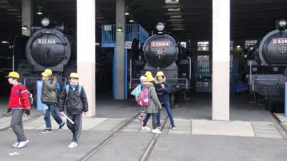 旧JR二条駅を移築した玄関を通り、展示してある資料を見たり、陳列している多くの機関車に乗ったりして楽しみました。