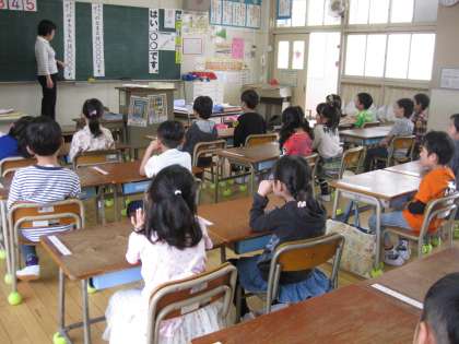 1年生の授業の様子です。椅子の座り方や質問の仕方など、だんだんと小学生らしくなってきました。