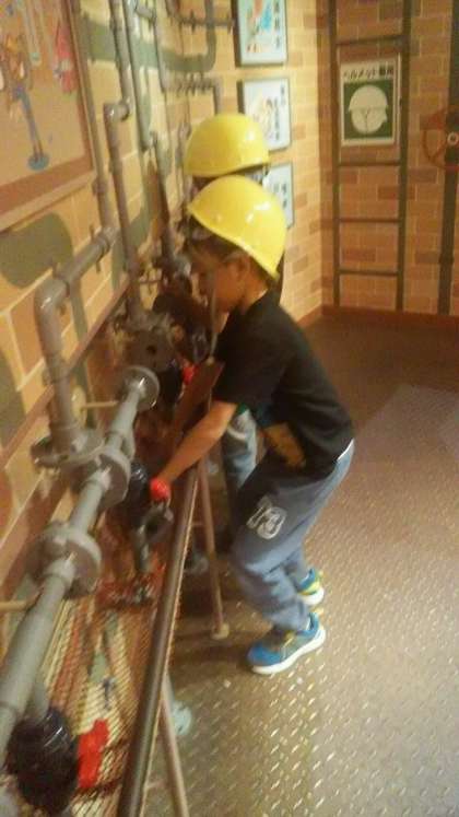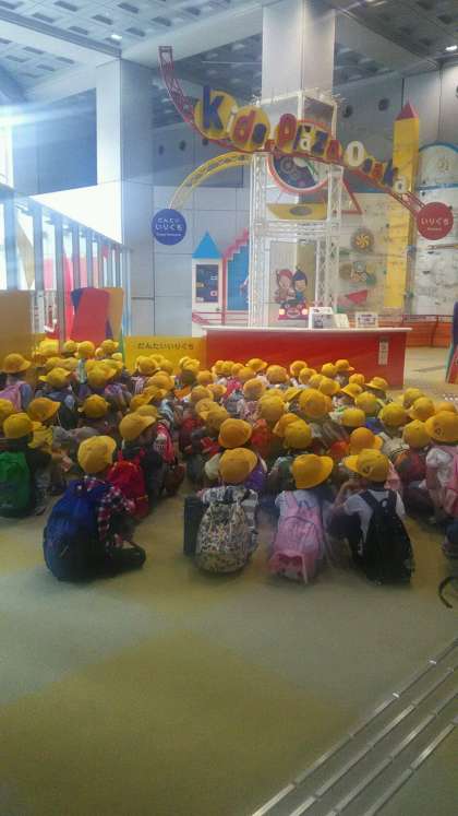 お天気もよくなり、1・2年生が春の遠足に出かけました。キッズプラザに到着。お話を聞いて見学をはじめます。