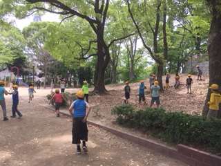 お弁当が終わってみんなで遊ぶ時間です。日差しもあってちょうどいいですね。