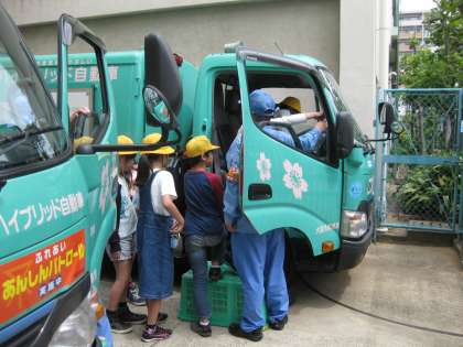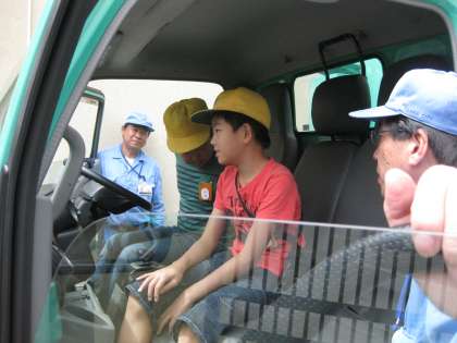 実際にパッカー車に試乗をさせていただきました。興味津々の4年生たちです。