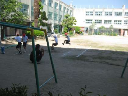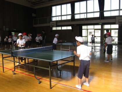 スポーツクラブはグランドで50m走、走り幅跳びに体育館で卓球に取りくみました。