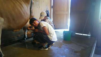 それぞれグループに分かれて、乗馬体験と乳搾り体験をしました。乳牛の生活などのレクチャーもしていただきました。