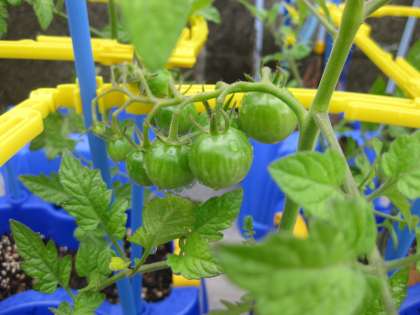 2年生が栽培しているミニトマトの実も知らない間に大きくなって、あとは真っ赤に色づくのが楽しみです。