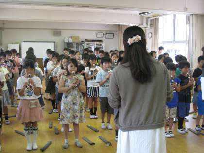 本当に充実した体験授業になりました。プロの演奏家と一緒に合奏するなんてなんと素晴らしいことでしょう。講師の先生から、「みなさんとってもよく吹けていたので、びっくりしました」とおほめの言葉をいただきました。4年生の皆さん頑張った甲斐がありましたね。
