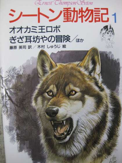 それから、もう一つみなさんに紹介したいことがあります。それは「シートン動物記」という本です。中でも校長先生が小学生のころよく読んだのが「オオカミ王ロボ」のお話です。残念なことに本校の図書館にはこの本がありませんので、今日は持ってきました。