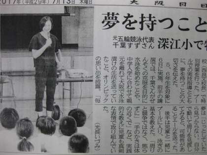 7月13日(木)、大阪日日新聞に本校で7月6日に実施したトップアスリート「夢・授業(水泳)」の記事が掲載されました。