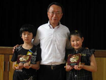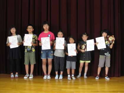 本日、校長先生より入選者の7名の皆さんに賞状と標語が採用された2名には盾が授与されました。「みんなにとって良い夏休みにしましょう!」