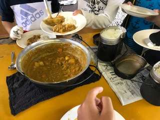 みんなで調理を分担して最高に美味しそうなカレーライスが出来上がりました。