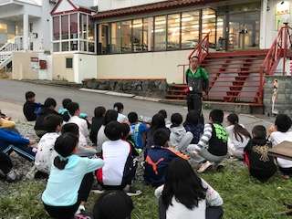 ナイトウォークの時間ですがまだ高原は明るく宿舎の周りを散歩してからナイトウォークに出かけます。