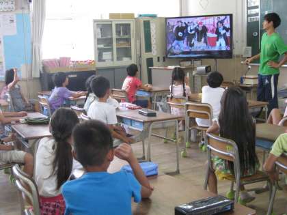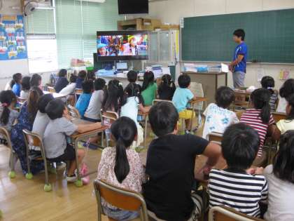1年生、2年生それぞれクラス合同で、今度の運動会で使用する楽曲の鑑賞を行っているところです。